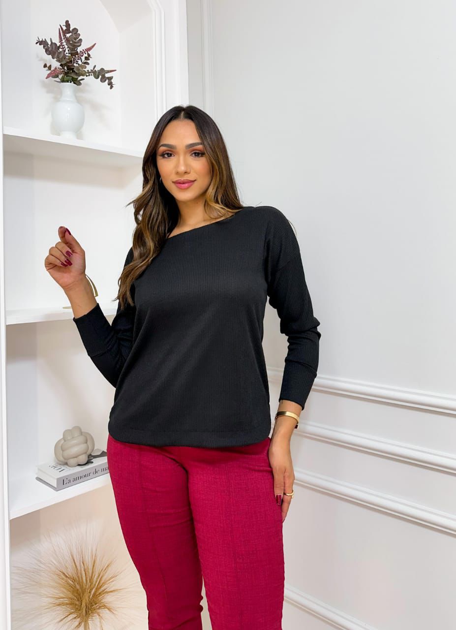 Blusa Ampla com punho largo e decote careca. Super confortável para curtir as tardes de outono e nos dias mais frios, usá-la com uma jaqueta ou um casaco que vai ficar super quentinha e elegante.