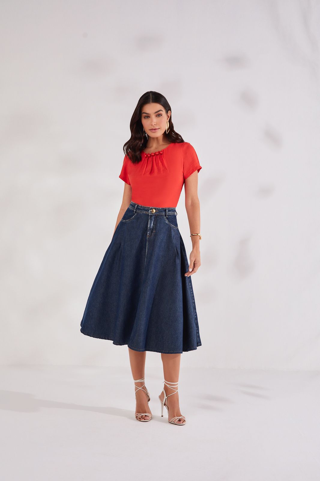 / Blusa Tecido Vermelha com Contas na Gola 27669