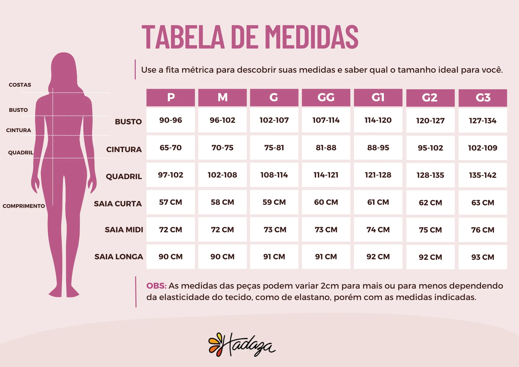 Conjunto Fitness de Poliamida da Hadaza, a escolha perfeita para a mulher que valoriza conforto, praticidade e estilo modesto em suas atividades físicas. Este conjunto é confeccionado em poliamida de alta qualidade, garantindo excelente elasticidade, respirabilidade e durabilidade. O conjunto inclui um short saia, que combina a liberdade de movimento do short com a elegância discreta da saia sobreposta, proporcionando conforto e confiança durante os exercícios. A blusa com cava raglan oferece um ajuste perfeito aos ombros e braços, permitindo uma maior amplitude de movimentos. Para um look completo, combine este conjunto com tênis esportivos e uma jaqueta leve para os dias mais frescos. Adicione um boné estiloso e uma garrafa de água prática para complementar seu visual fitness. Adquirir o Conjunto Fitness de Poliamida da Hadaza é investir em uma peça versátil e de alta qualidade que valoriza seu estilo e proporciona conforto em todas as suas atividades. Não perca a oportunidade de elevar seu guarda-roupa fitness com este conjunto indispensável. Medidas da Modelo: Manequim – 38/P Altura: 170cm Busto: 94cm Cintura: 70cm Quadril: 102cmante