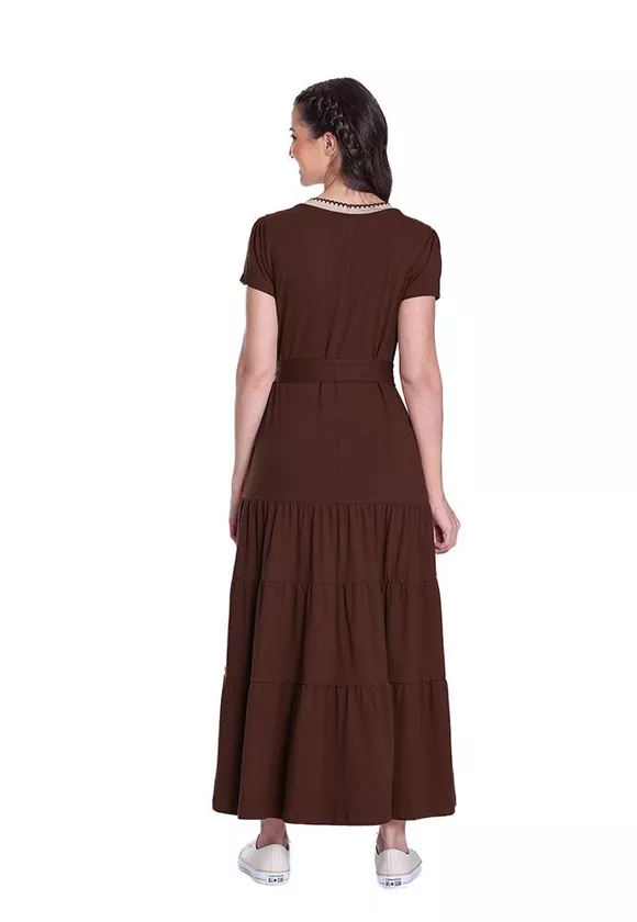 O vestido Gislaine foi confeccionado em malha e ribana retilínea. O modelo apresenta decote com acabamento em ribana retilínea, suas mangas são curtas com leve franzido, acompanha faixa e o shape é soltinho com babados. Esse vestido possui muito conforto e excelente vestibilidade.