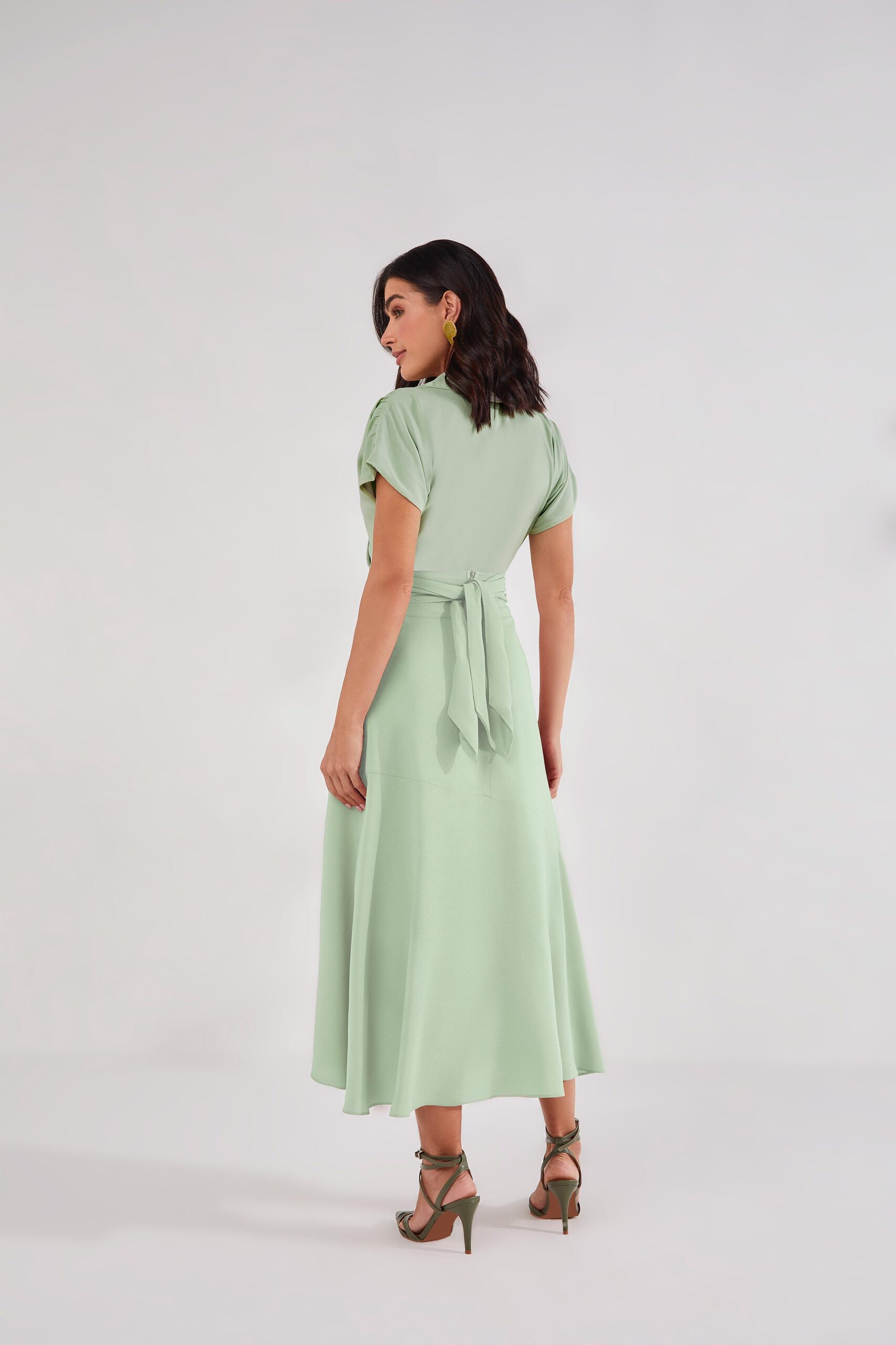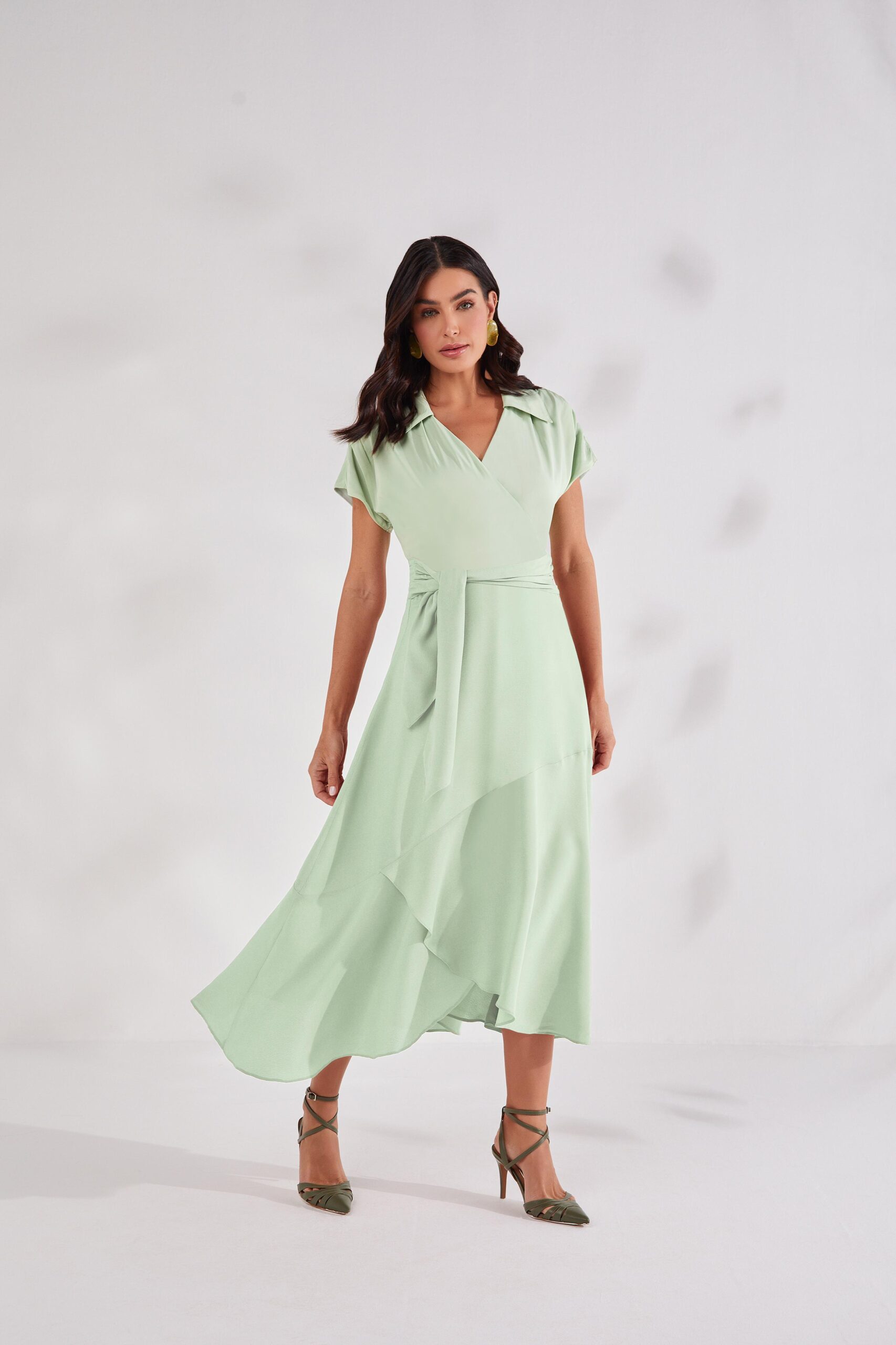 Vestido Midi Crepe Verde com Gola 27628 quantidade