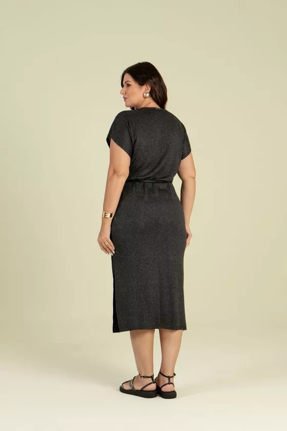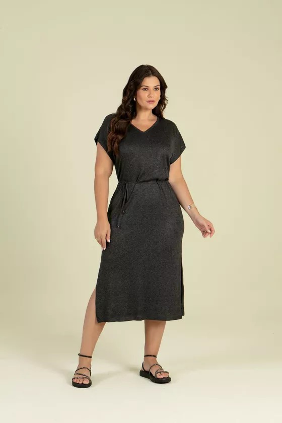Vestido Plus Size Midi em Tricô: Sofisticação e Conforto para Todas as Ocasiões Por que Este Vestido é Sensacional: Conforto em Tricô de Qualidade: Feito com tricô de alta qualidade, estilo modal,  esse vestido oferece maciez e um toque suave, garantindo conforto durante todo o dia. Detalhes que Fazem a Diferença: Com decote em V, mangas elegantes sem cava e pequenas fendas laterais, esse modelo traz detalhes sutis que acrescentam sofisticação ao look. Acabamento  rolete com ponteiras, que oferece um ajuste perfeito e um toque de estilo único; e saiote, para você ficar mais tranquila sabendo que não em nada marcando.